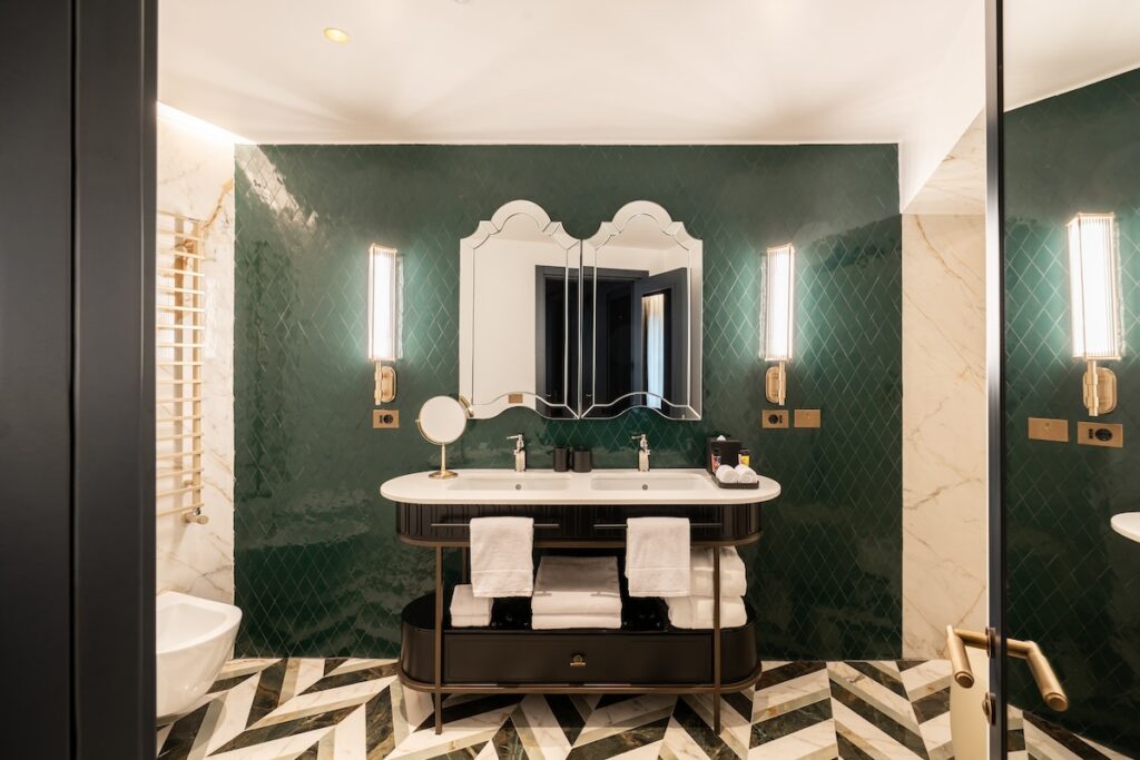Le aree comuni sono veri e propri salotti conviviali con arredi preziosi, decorazioni e sedute dalle forme diverse che rendono l’atmosfera confortevole. Anche il ristorante e lounge bar Affinity – Kitchen & Alchemy è uno spazio di connessione e condivisione tra ingredienti, sapori e persone, come fa ben capire il nome derivato dall’opera Le affinità elettive. La private Spa è invece un’oasi dove rigenerarsi e ritrovare l’equilibrio.