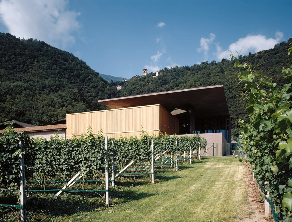 Nel cuore dell’Alto Adige, tra i filari ordinati di Nalles, elegante località tra Bolzano e Merano, la cantina Nals Margreid si presenta come un manifesto di architettura contemporanea profondamente radicata nella cultura vinicola del territorio.