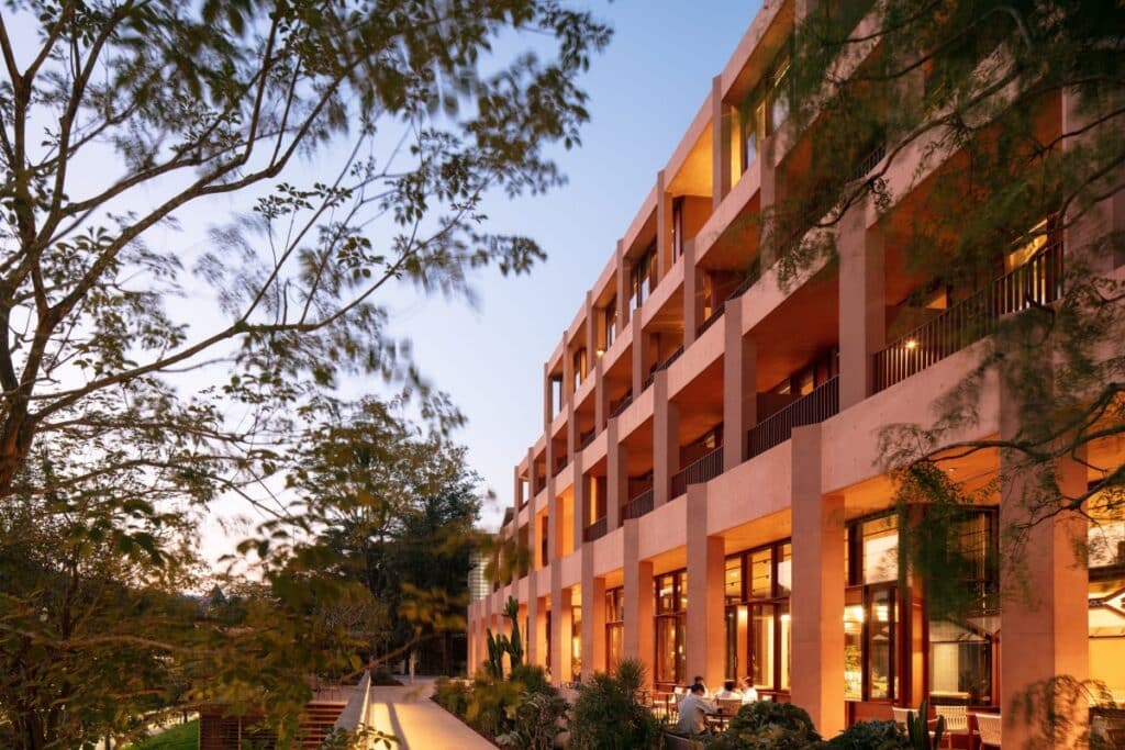 In prossimità del parco naturalistico dell’Aranya Jiulong Lake, nel sud della Cina, a circa cento chilometri da Guǎngzhōu (l’antica Canton), il moderno Author’s Room Hotel del marchio “naive Imaginist” fa parte di un centro culturale ibrido strettamente legato alle radici locali. B.L.U.E. Architecture Studio, fondato a Pechino dagli architetti giapponesi Yoko Fujii e Shuhei Aoyama, è lo studio che si è occupato del progetto.