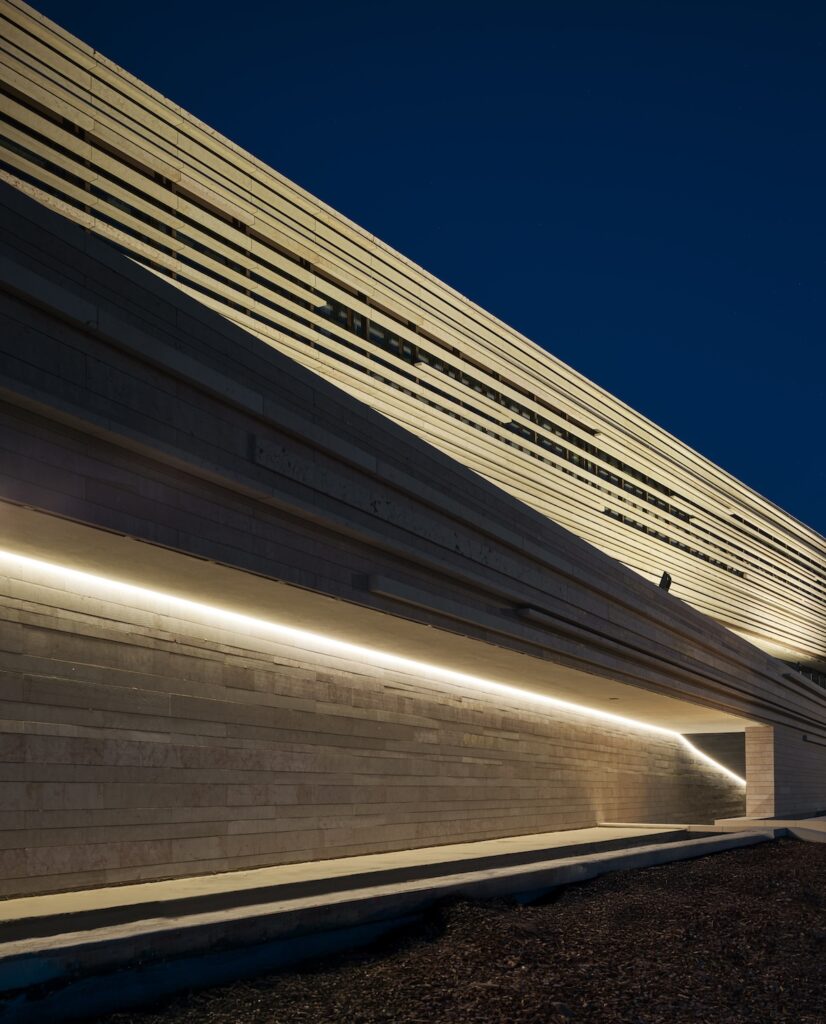 All’esterno la presenza della pietra locale evoca solidità prendendo ispirazione da le “marogne”, i muretti a secco che da secoli proteggono i terrazzamenti viticoli della Valpolicella. Monteleone21 è un progetto a basso impatto ambientale premiato per Pratiche sostenibili nell’enoturismo nel concorso Best of Wine Tourism. Ha l’obiettivo di conseguire la certificazione LEED Gold, riducendo il consumo energetico grazie a schermature solari, sistemi di ventilazione naturale e a un tetto-giardino che riduce il surriscaldamento e trattiene l’acqua piovana, mentre l’approvvigionamento energetico è garantito da fonti rinnovabili come la geotermia e i pannelli fotovoltaici.