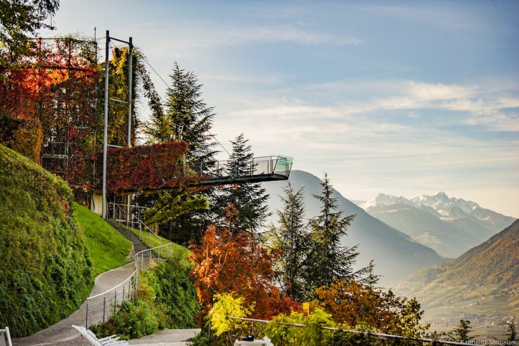 Se c’è un luogo che in autunno esprime la quintessenza di Merano è il Trauttmansdorff. Disposti a anfiteatro su 12 ettari, i giardini ospitano più di 80 paesaggi botanici provenienti da tutto il mondo. I loro colori, tra il dorato e il rosso intenso, creano scenari da cartolina. Dai punti panoramici come la Terrazza di Sissi o il Binocolo sospeso di Matteo Thun si abbraccia la città con lo sguardo, incorniciata dalle cime già imbiancate. Nel cuore del complesso sorge il castello, un tempo residenza invernale dell’imperatrice, oggi sede del Touriseum, museo dedicato a 250 anni di turismo alpino. La visita è un viaggio tra natura e cultura, da completare con una sosta nei caffè all’aperto per assaporare l’aria frizzante di stagione.