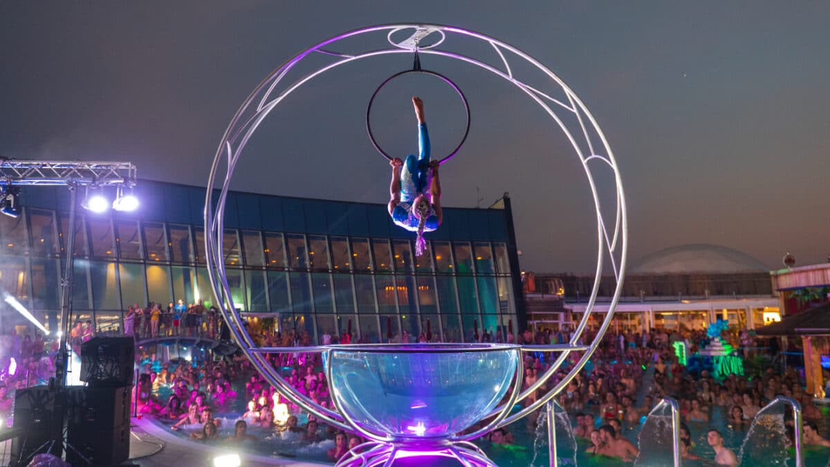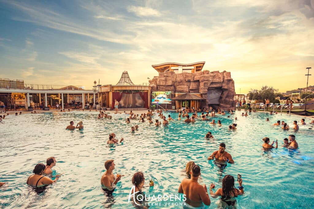 Sì, sono uno degli elementi distintivi di Aquardens. Abbiamo trasformato la sauna in uno spettacolo vero e proprio. L’Aufguss – il termine, letteralmente ‘gettata di vapore’, si riferisce a un rituale di benessere praticato nella sauna finlandese – è diventato uno dei momenti artistici più attesi. Musica, oli essenziali e performance immersive che raccontano frammenti di attualità , storia, poesia e tanto altro. I nostri maestri di sauna sono degli artisti e il pubblico, sudando, partecipa al rito. È un’esperienza emozionale che coinvolge i nostri ospiti a 360 gradi.