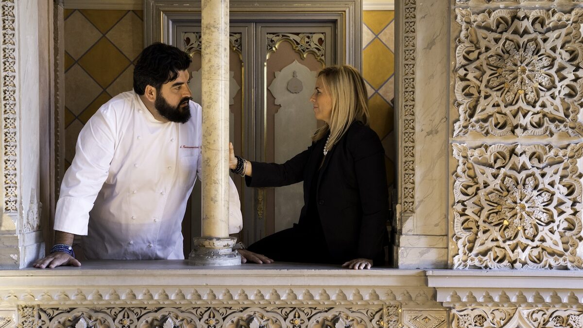 In apertura, Antonino Cannavacciuolo e Cinzia Primatesta a Villa Crespi a Orta San Giulio (Novara).