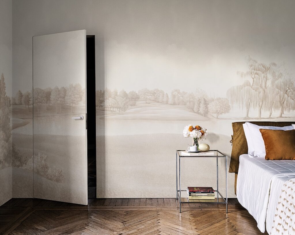 I luoghi della collezione Bon Voyage – Cap 2 di LondonArt non si trovano sulle mappe: sulle pareti si aprono infatti gli scenari di un viaggio che esplora materia, visione e memoria, immaginato da Nicola Bottegal. Il soggetto La Pelouse Royale è utilizzato a correre su parete e porta filo muro, un esempio della potenzialità del rivestimento cartaceo nel creare un effetto avvolgente e coinvolgente.