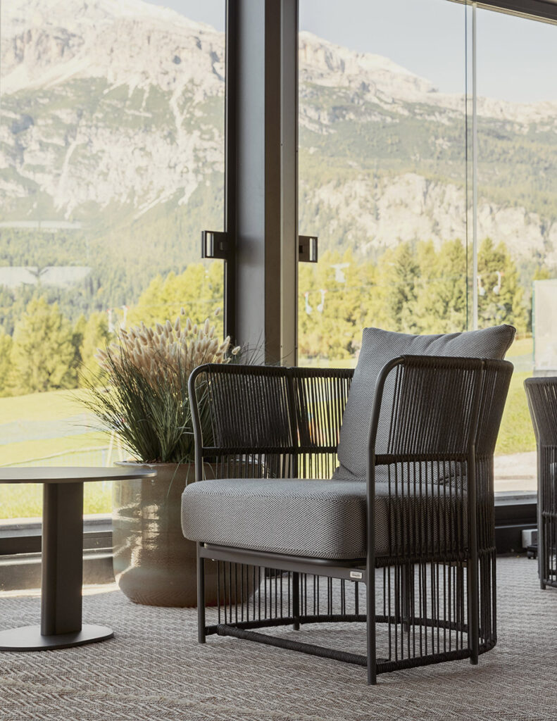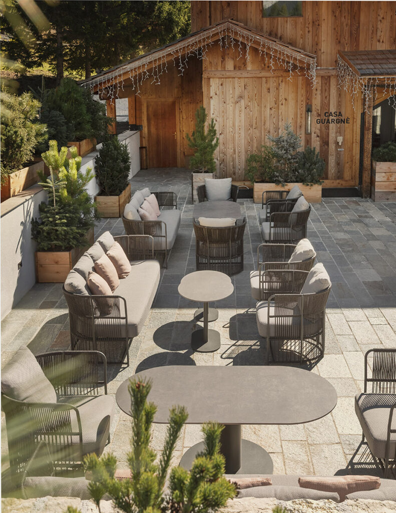 Per valorizzare al massimo gli spazi all’aperto, autentici palcoscenici naturali sulla vallata, Casa Guargnè ha scelto gli arredi Varaschin. La protagonista dell’area lounge e accoglienza è la collezione Tibibado, frutto della collaborazione con gli architetti Calvi e Brambilla.