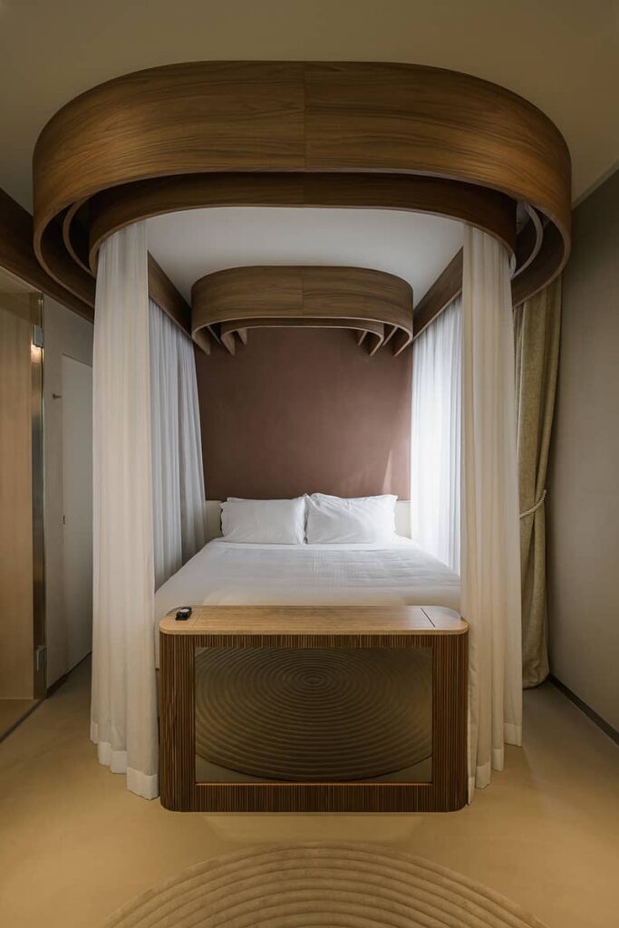 Mode Hotel, inaugurato nell’ottobre 2025, altro non è che il proseguo della visione imprenditoriale lanciata da Mauro Santinato, presidente di Teamwork Hospitality, e concretizzata da un pool di architetti incaricato di progettare l’albergo. Materiali di pregio, finiture d’eccellenza e suite una diversa dall’altra per far sentire ogni ospite unico, in un contesto unico.
