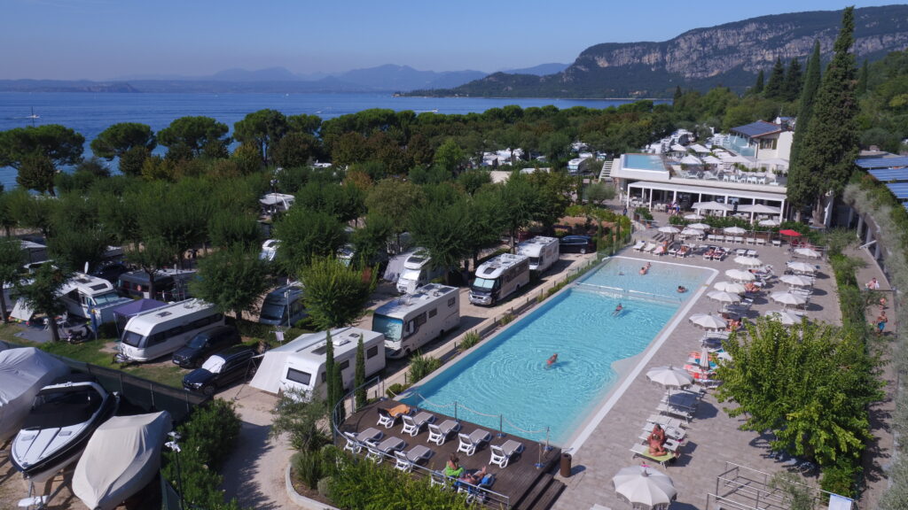 Il nostro progetto è nato nel 1961 quando mio padre, l’ingegnere Antonio Rizzardi, ebbe la lungimiranza di trasformare dei terreni vitati e a uliveto di proprietà storica della famiglia. Nel tempo si è evoluto sia nelle dimensioni, passando da 4 a 8 ettari, sia nei servizi e negli alloggi offerti, sempre più vari e complessi: siamo passati così da 2 alle attuali 4 stelle. Inizialmente c’erano solo piazzole; oggi disponiamo di soluzioni di varia tipologia e maxicaravan che vanno dallo standard al deluxe. Anche i servizi sono cambiati radicalmente: siamo partiti dai soli servizi igienici, mentre oggi l’offerta spazia dal ristorante al market, dalla spa al miniclub, fino alle attività sportive e all’animazione.