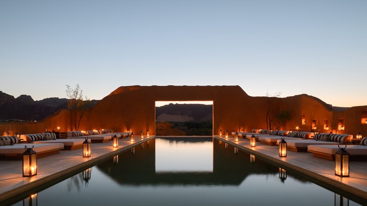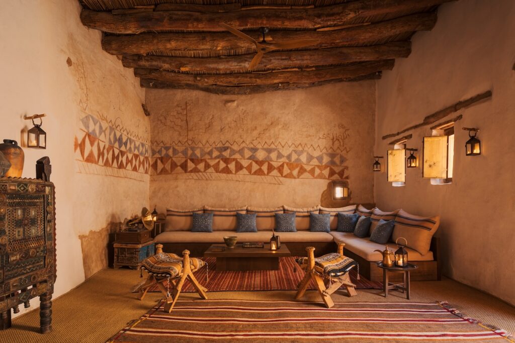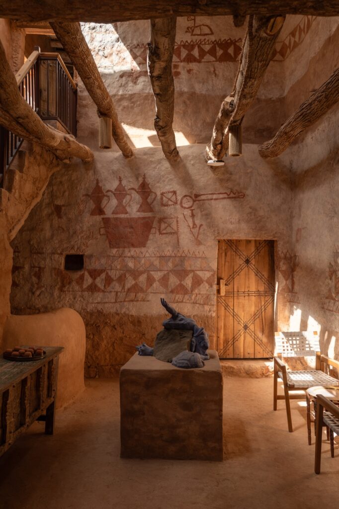 In apertura, l’architettura in fango e pietra del Dar Tantora The House Hotel ad AlUla.