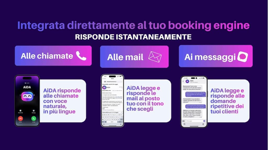 Tra queste soluzioni si inserisce AiDA (Artificial Intelligence Digital Agent), un AI receptionist sviluppato per il settore turistico-ricettivo che integra voce, web, WhatsApp ed e-mail in un unico sistema conversazionale.