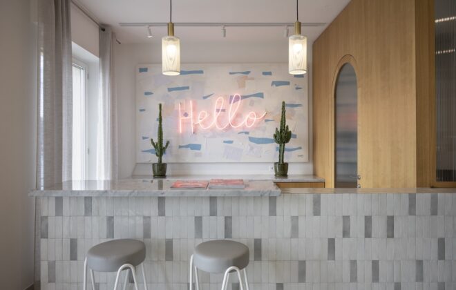 Fondamentale per il brand è l’impegno nei confronti dell’arte, attraverso collaborazioni con artisti per ciascuno dei suoi nuovi hotel. Per il citizenM Rome Tiberina UNO, artista noto per le sue opere di street art, ha creato una straordinaria opera d’arte intitolata Guarda in Alto, 2023 – un omaggio alla città di Roma: un’opera che si estende per 402 metri quadri sul soffitto del piano terra, dipinto a mano con più di 80 colori differenti. All’interno, opere degli artisti Piero Percoco e Camillo Pasquarelli, con la curatela di Elisa Medde. Le opere di Percoco, noto per l’uso vivido del colore e della fotografia in stile documentario, danno uno sguardo satirico agli aspetti della vita moderna nel Sud Italia, mentre le fotografie di Pasquarelli ritraggono alcuni dei migliori bar di Roma e catturano l’essenza della città. Nelle camere, scatti di Polaroid del fotografo padovano Andrea Tonnellotto.