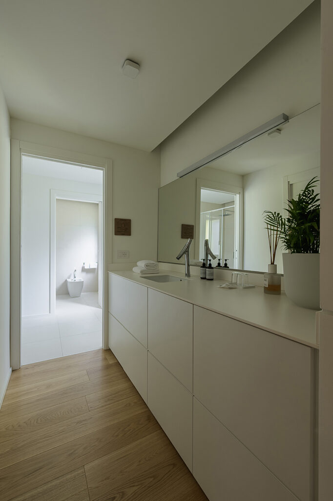 In Greenside non ho percepito confini: tutto è fluido, sfumato, mescolato. La suite è molto più di un semplice contenitore che ospita; è un concept in cui, pur nel design iper-minimalista e lontano da qualunque eccesso, si riesce a intravedere limpidamente e a percepire il Tutto in cui siamo immersi. Questo Tutto che, volendo usare un altro termine, potremmo far coincidere con la Natura che anima l’architettura scultorea della suite, infondendo linfa e calore.