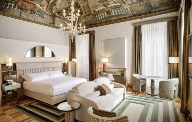 Lo schema adottato per il locale si distacca completamente dal contesto storico del palazzo e attraverso un concetto contemporaneo si trasforma in una capsula spaziale per viaggiare nel tempo. Gli anni ’90, con il lancio della prima sonda spaziale e della prima Stazione Spaziale Internazionale, diventano il riferimento da cui attingere la rappresentazione di un viaggio attraverso la luce per conoscere e assaggiare i diversi ed eclettici sapori della catena di sushi come se si fosse all’interno di una nave spaziale del futuro.