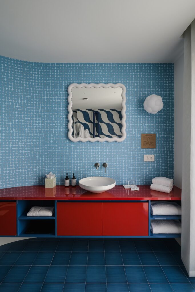 Il mare del futuro è quello tradotto dallo studio di architettura GLA nella suite Mare 3.0 del MODE Hotel. Forme sinuose, colori luminosi e grafiche richiamano il profilo delle onde e svelano un’importante verità: il mare può diventare l’emblema di una nuova (e necessaria) economia circolare.
