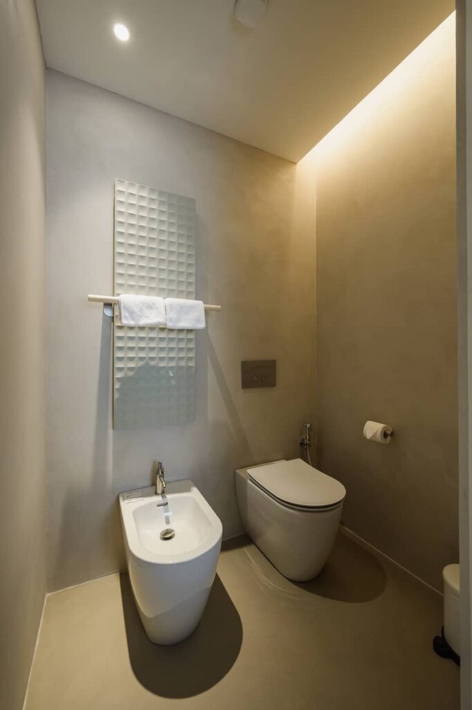 Gli elementi in pietra sono stati realizzati da FMG Shapes – Italian Luxury Marble, eccellenza italiana del settore, che ha prodotto i rivestimenti, il tavolo e le ciotole del bagno, parte della collezione Imera, disegnata da ovre.design. Tutti i materiali marmorei utilizzati provengono da scarti di lavorazione e sono quindi totalmente ecosostenibili. Gli elementi in agglomerato sono realizzati anch’essi da materiali di recupero, legati da cemento verde Portland, prodotto esclusivamente con acqua e privo di componenti chimiche.