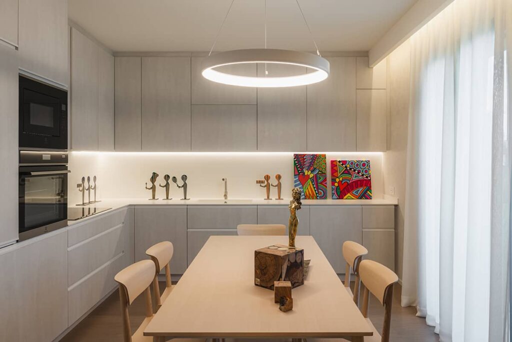 La ricerca progettuale ha posto particolare attenzione all’integrazione estetica degli elementi luminosi con il concept architettonico, selezionando soluzioni che valorizzano gli spazi e ne esaltano le caratteristiche, senza compromettere la funzionalità.