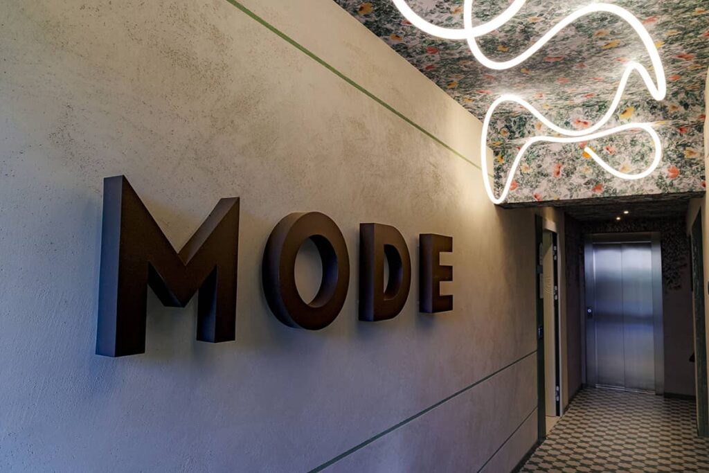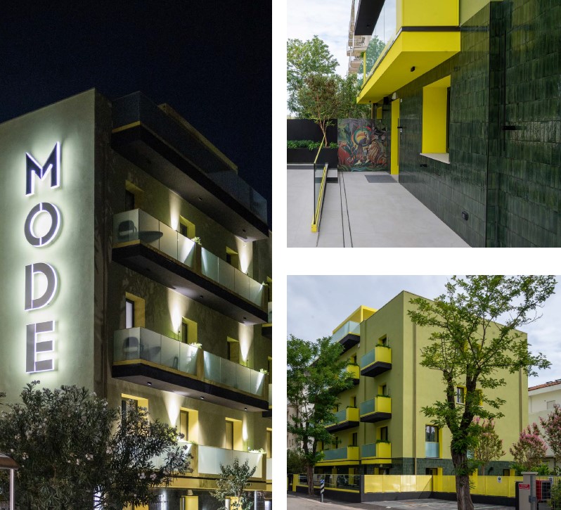 MODE HOTEL nasce dalla riqualificazione dell’ex Hotel Arlesiana di Rimini, nella zona di San Giuliano Mare nelle vicinanze del porto, a poca distanza dai punti di attrazione principali, sia business che leisure. Il progetto MODE si concretizza in uno spazio ricettivo che possa essere un punto di riferimento per il settore dell’ospitalità basato sulla riqualificazione di vecchie strutture storiche dell’industria turistica riminese.
