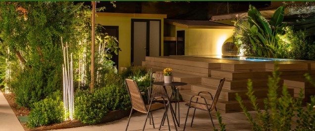 Il progetto illuminotecnico di Green is the new black, del giardino e della suite Garden Suite è stato studiato da Chiara Tabellini di Comfort Hub.