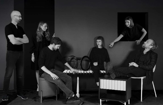 Gli arredi modulari dello spazio dedicato al co-working del MODE Hotel.