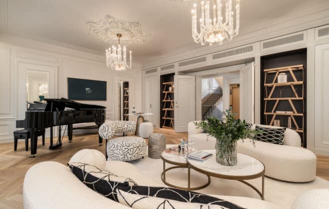 Philippe Starck, affiancato da Jean-François Le Gal dello studio di architettura Advento, ha immaginato gli interni come luoghi contemporanei ma fuori dal tempo, con un mood estetico teso a creare atmosfere raffinate e rarefatte.