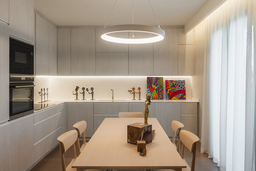 Le geometrie essenziali e le tonalità naturali avvolgono lo spazio in un’atmosfera calma e misurata, in cui ogni elemento trova il proprio posto. La linearità delle forme non è sinonimo di rigore sterile, ma diventa linguaggio di rispetto e consapevolezza: un design educato, che lascia parlare la materia e invita a un abitare più consapevole.