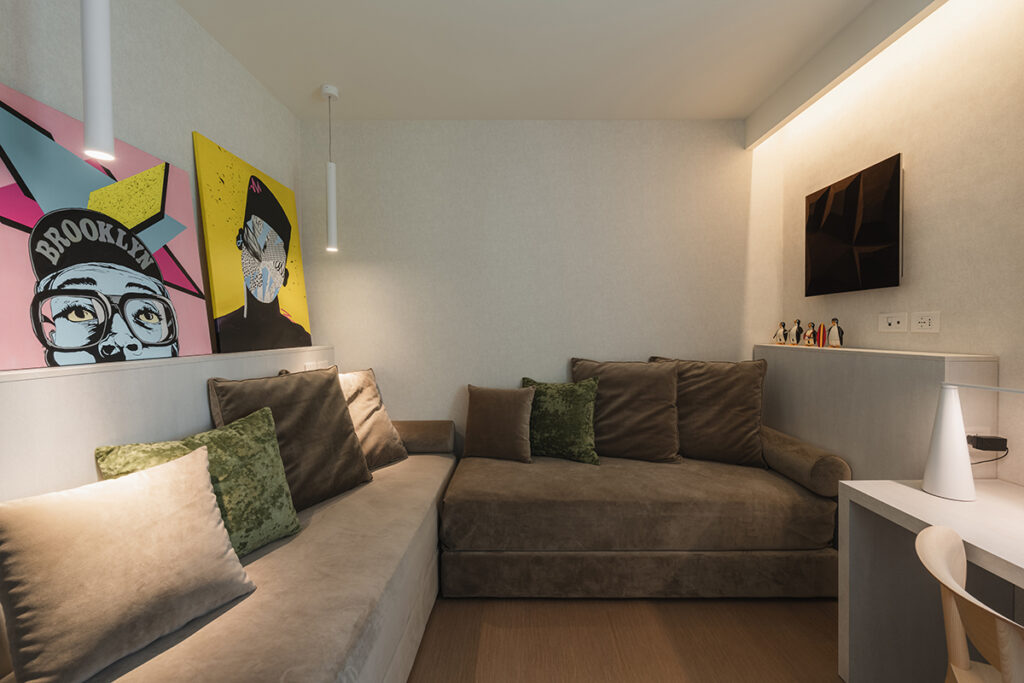 L’arte nella Suite Mini’mor trasmette il valore della durabilità e della trasformazione: le opere dialogano con gli arredi, donando agli oggetti una seconda vita e promuovendo un’estetica che non spreca, ma custodisce.