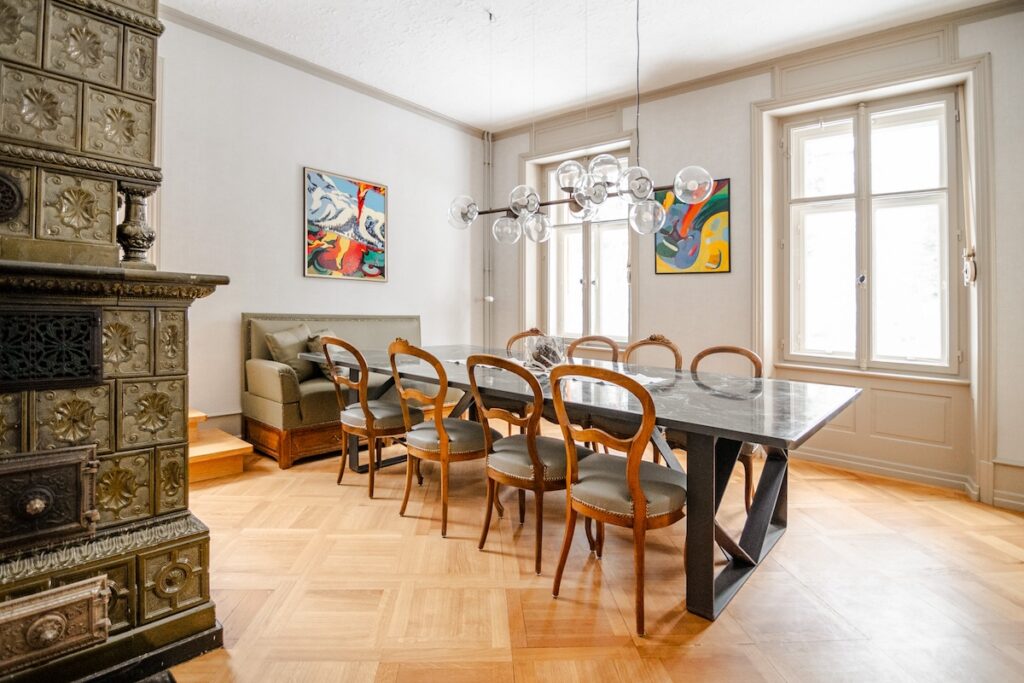 Costruita nel 1882 nel cuore di Pontresina e appartenuta per generazioni alla storica famiglia Klainguti, la villa è stata riportata al suo splendore da Studio C Architects con Pia Schmid. Il progetto ha preservato i dettagli più intimi della vita domestica – come il “tabellone delle altezze” inciso sulle pareti o le antiche carte da parati – fondendo memoria e design contemporaneo.