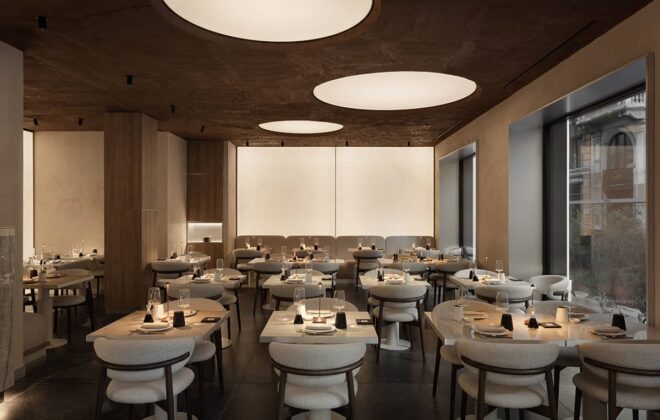 Gli arredi raccontano un dialogo tra memoria e design d’autore. Nel salone risplende il lampadario Barovier&Toso degli anni Trenta-Quaranta, mentre la lampada Quadrifoglio di Gae Aulenti per Guzzini introduce un tocco modernista. A completare la narrazione, opere d’arte del Novecento e pezzi iconici di design come la sedia Leggera di Gio Ponti per Cassina, accostata a scrivanie contemporanee nelle suite, o un tavolino di Vico Magistretti per Cattelan valorizza ambienti di passaggio come il vano scala, sono da pezzi iconici.